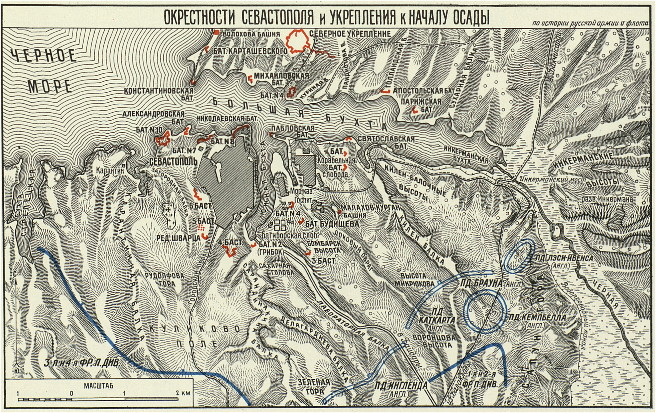 Окрестности Севастополя и укрепления к началу осады.
