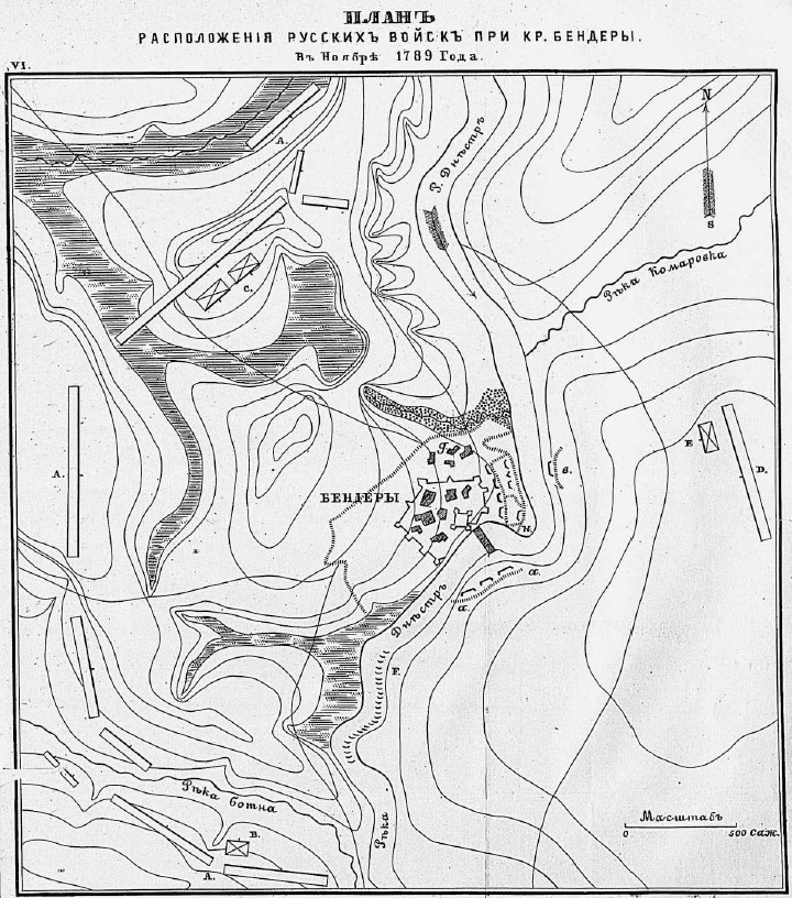 Русско-турецкая война 1787–1791 гг. План расположения русских войск при крепости Бендеры