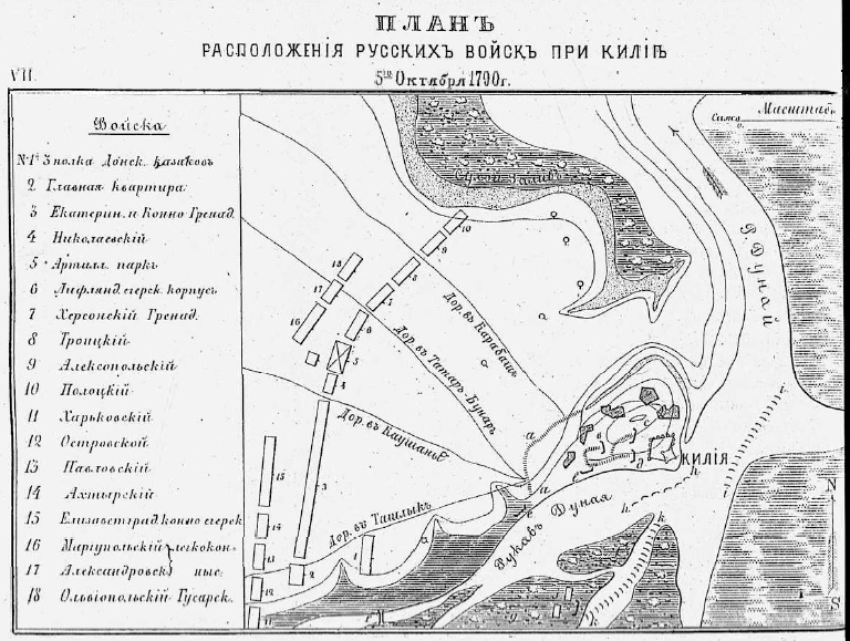 Русско-турецкая война 1787–1791 гг. План расположения русских войск при Килии