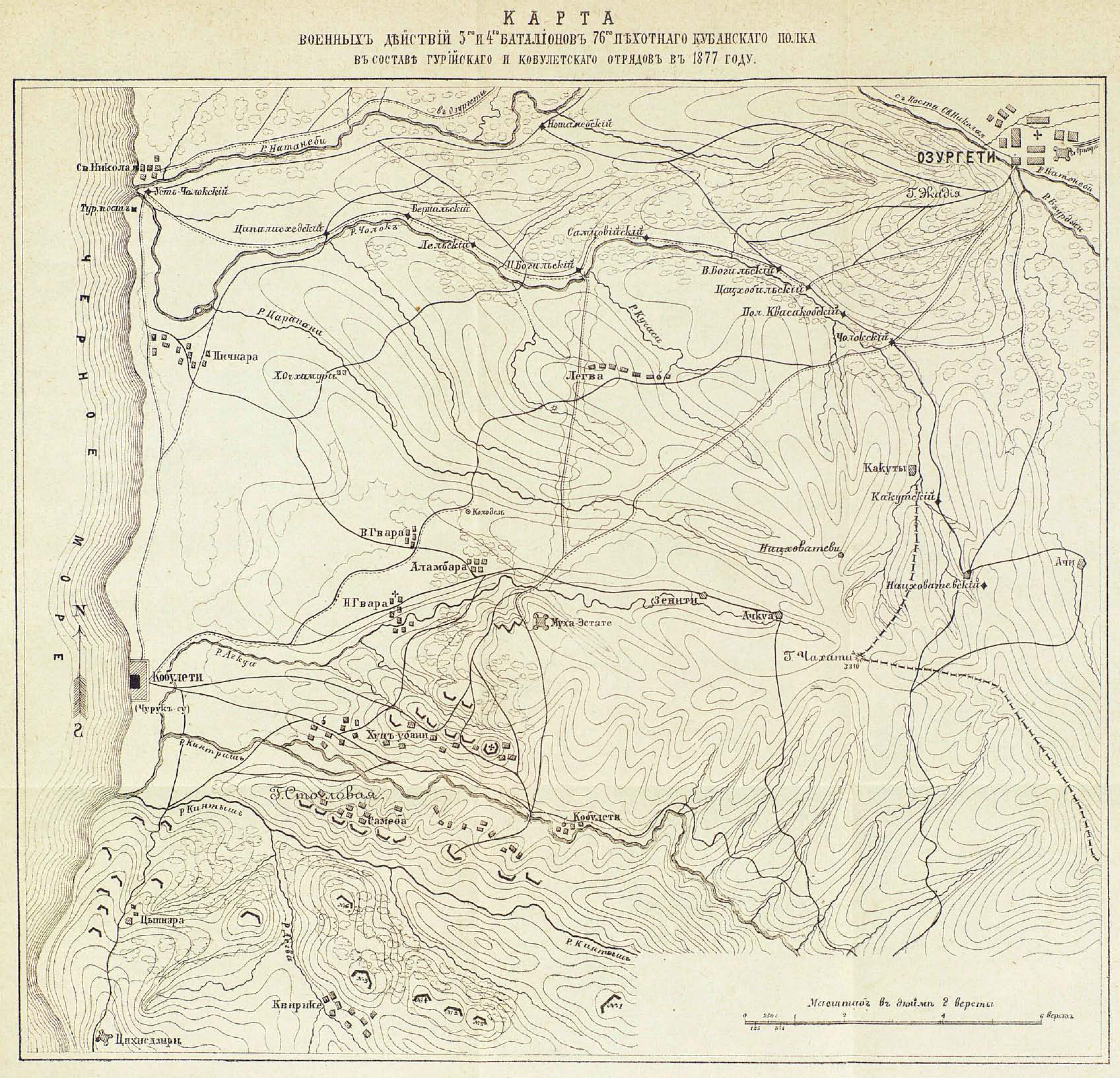 Военные действия 3 и 4 батальонов 76 пехотного Кубанского полка в составе Гурийского и Кобулетского отрядов в 1877 году