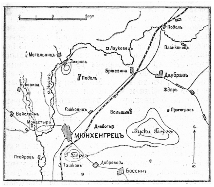 Район военных действий в кампанию 1866 г у гор. Мюнхенгрец.