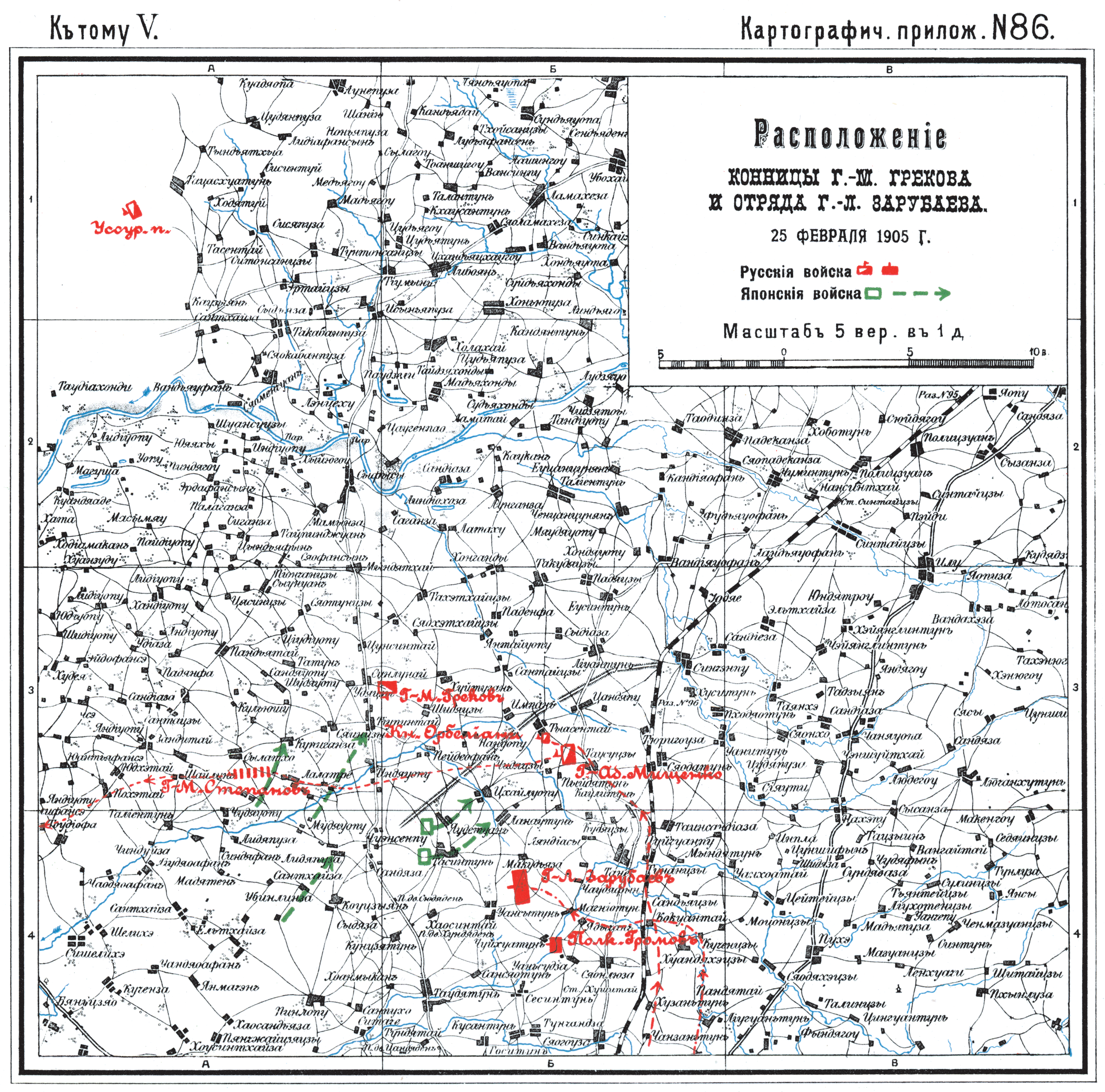 Расположение конницы генерал-майора Грекова и отряда генерал-лейтенанта Зарубаева 25 февраля 1905 года