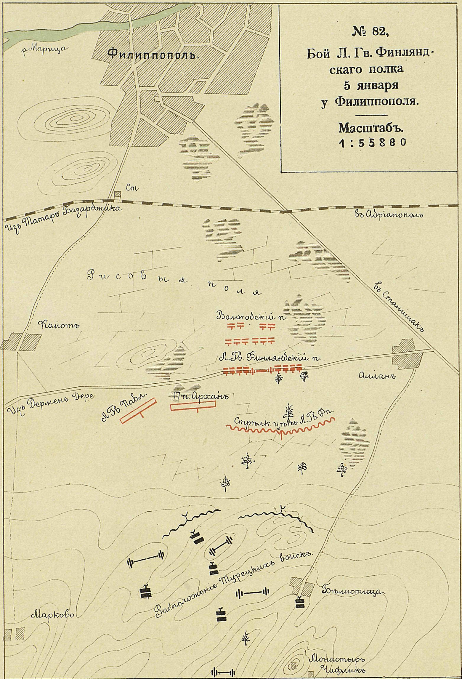 Русско-турецкая война 1877-1878 годов. Бой Лейб-Гвардии Финляндского полка 5 января у Филиппополя