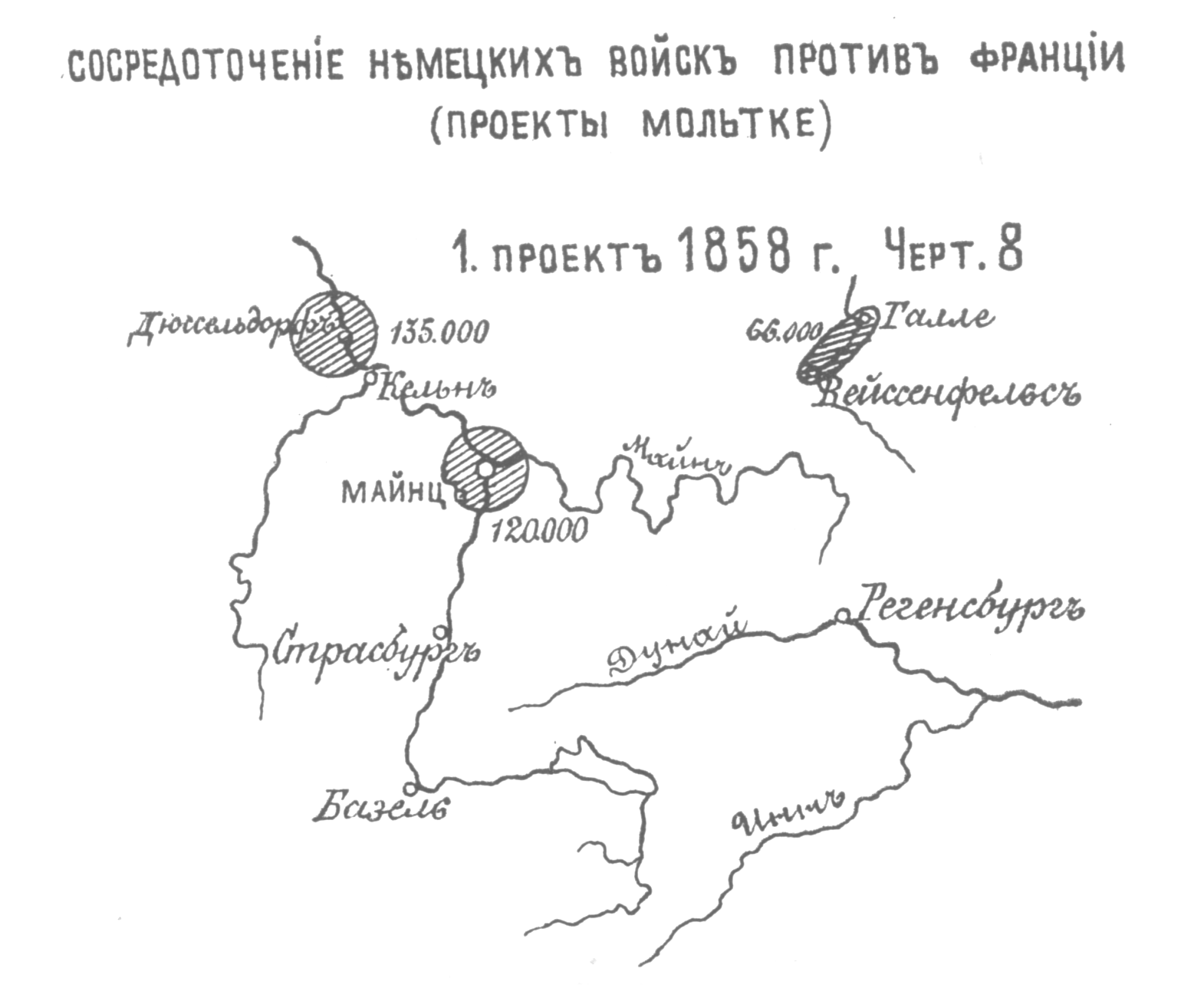 Сосредоточение немецких войск против Франции (проекты Мольтке). Проект 1858 года