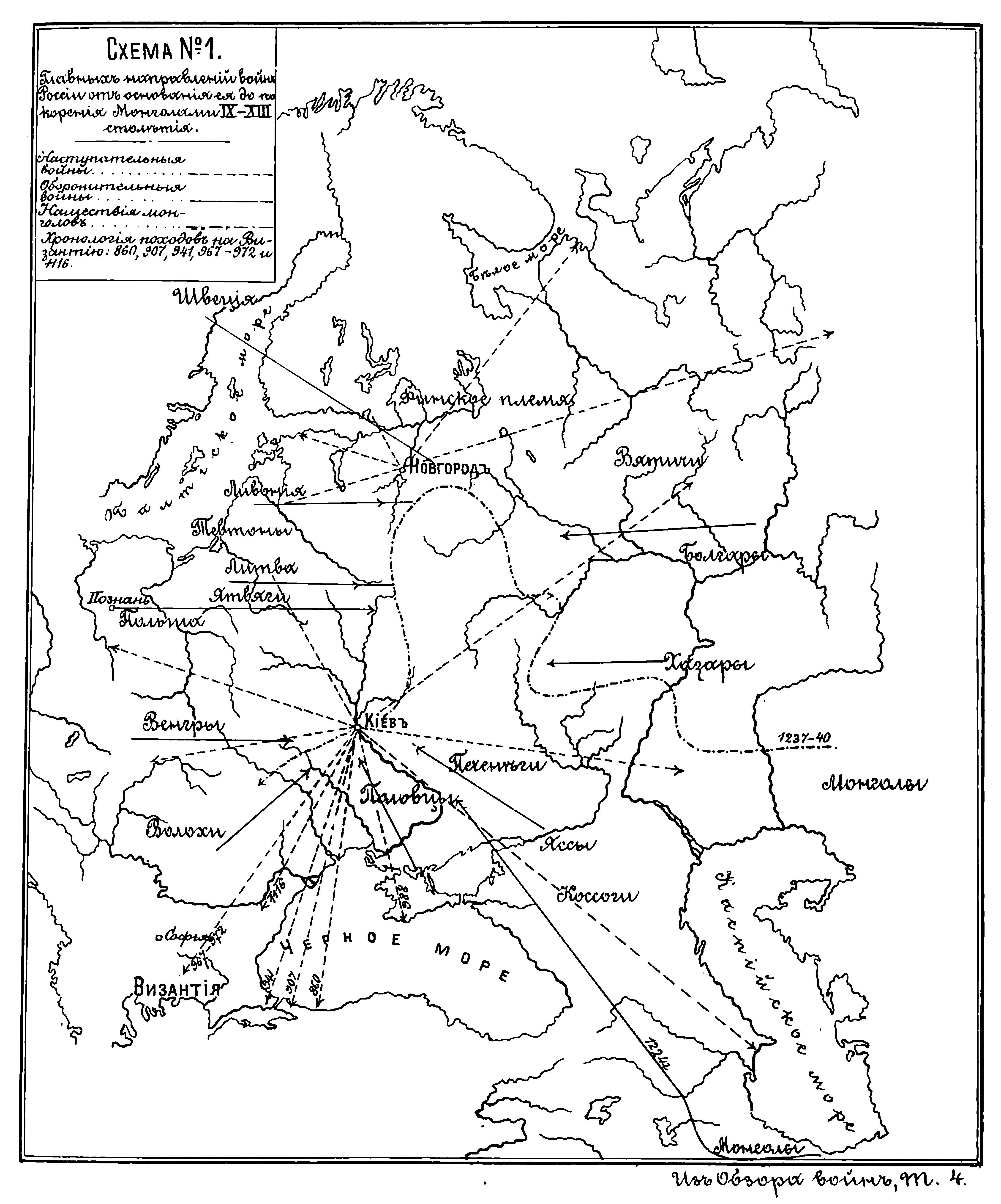 Главные направления войн России от основания ее до покорения Монголами IX-XIII столетий