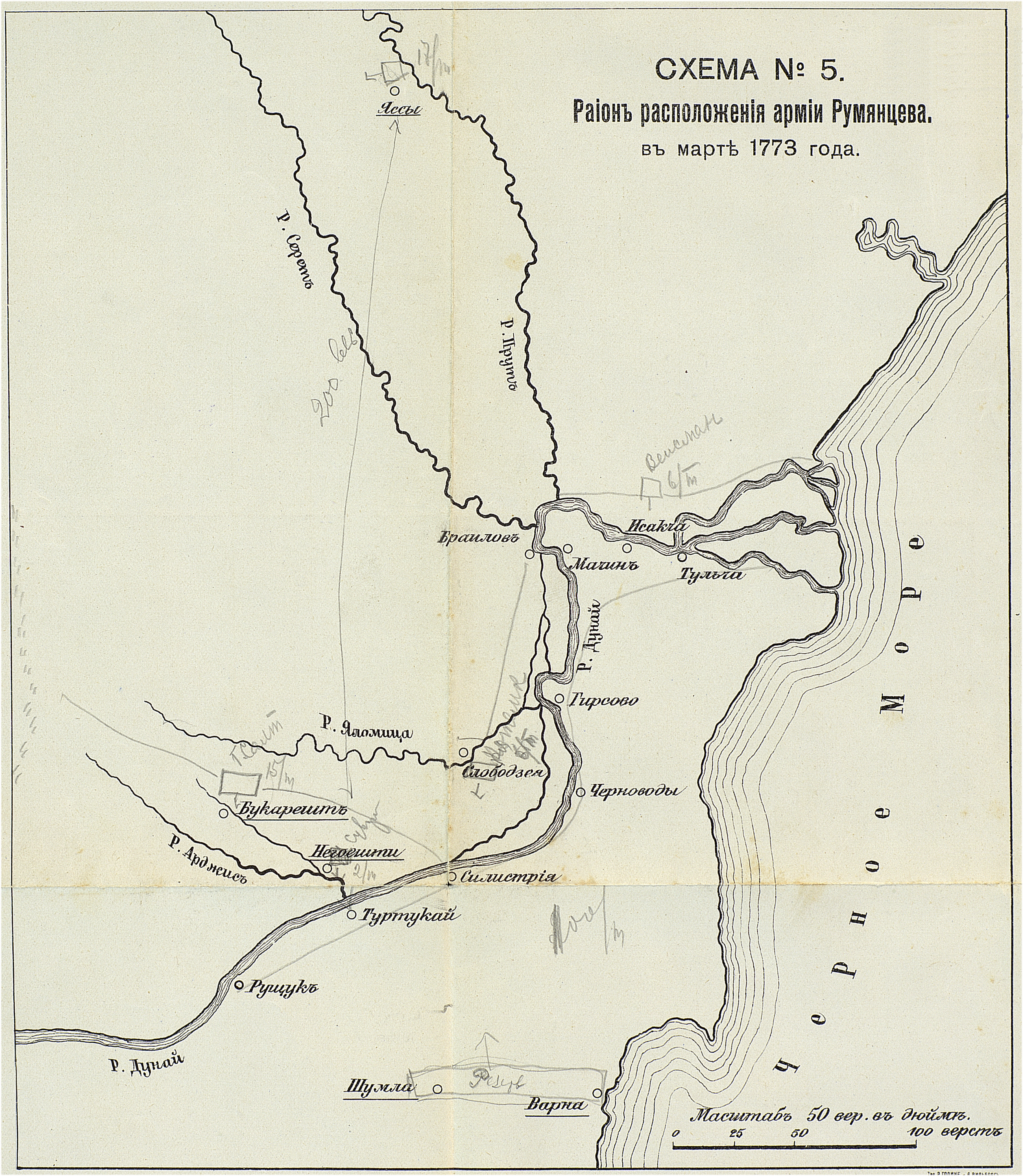 Район расположения армии Румянцева в марте 1773 года