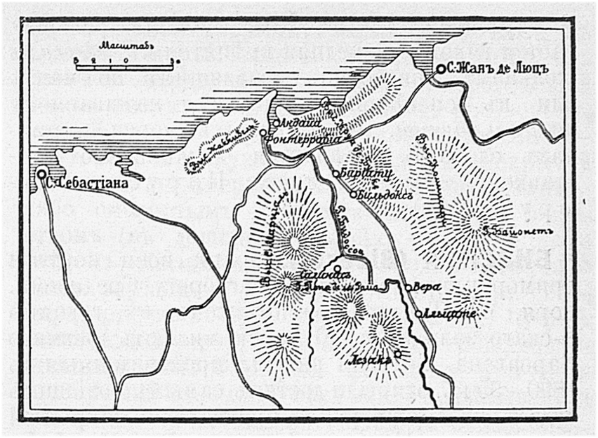 Район сражений 31 августа и 7 октября 1813 года у реки Бидассоа