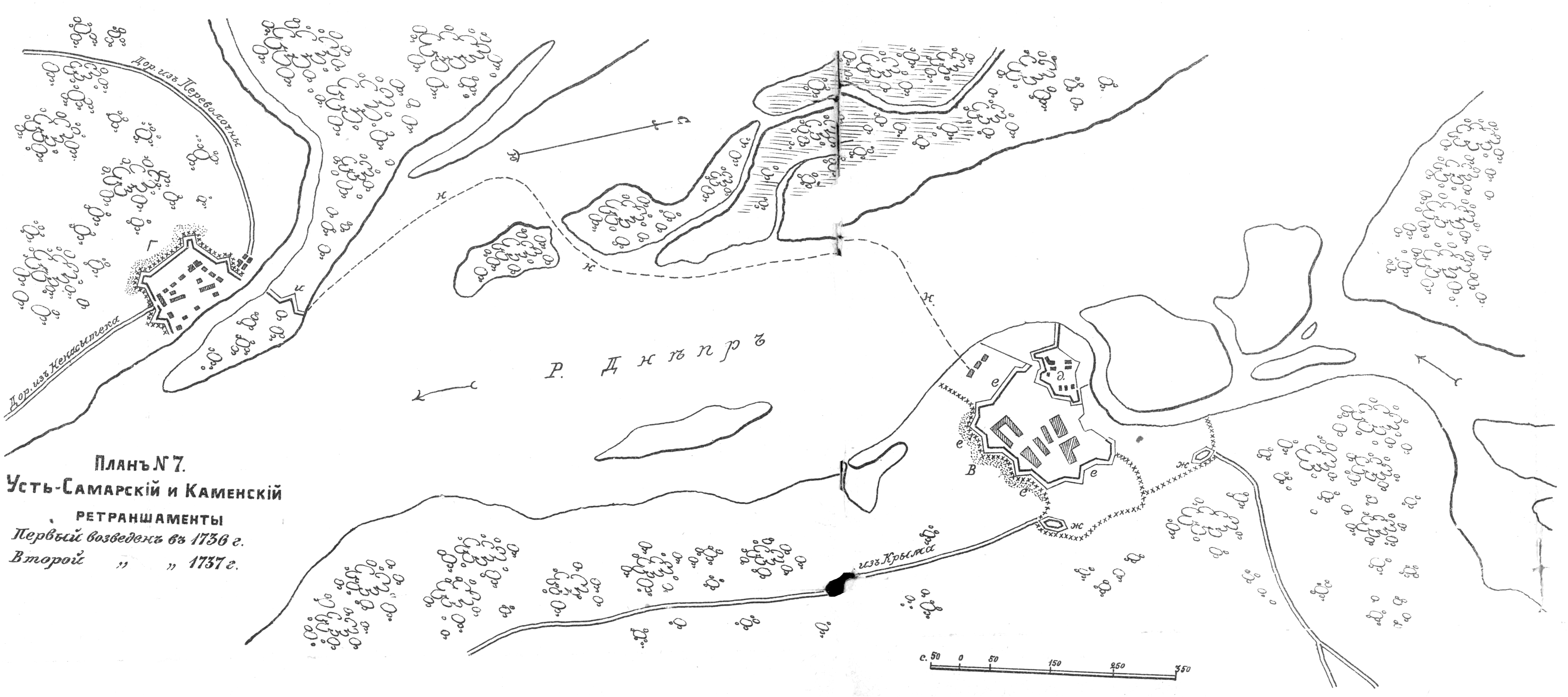 Усть-Самарский и Каменский ретраншаменты. Первый возведен в 1736 году, второй в 1737 году