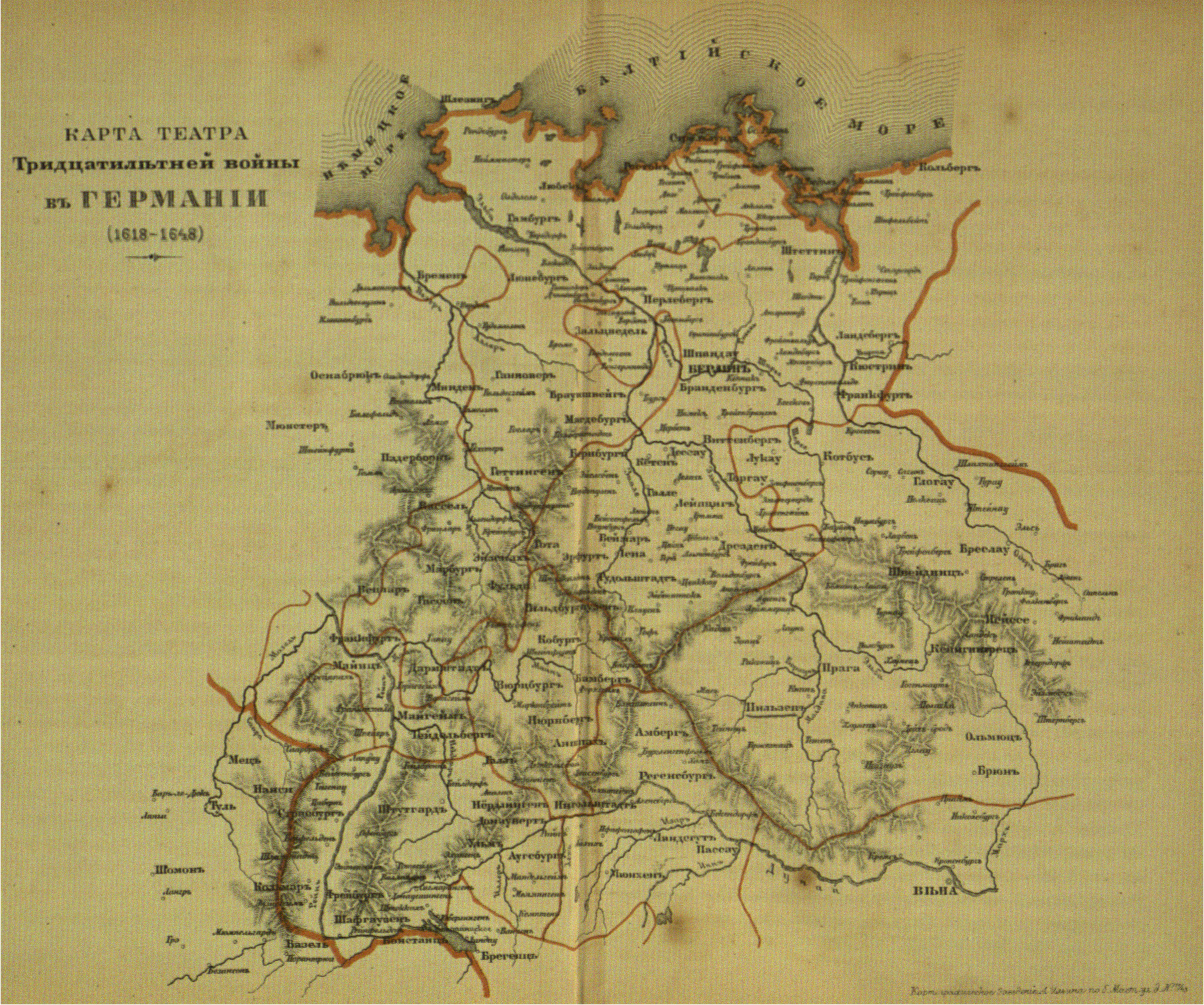 Карта театра Тридцатилетней войны в Германии (1618-1648).