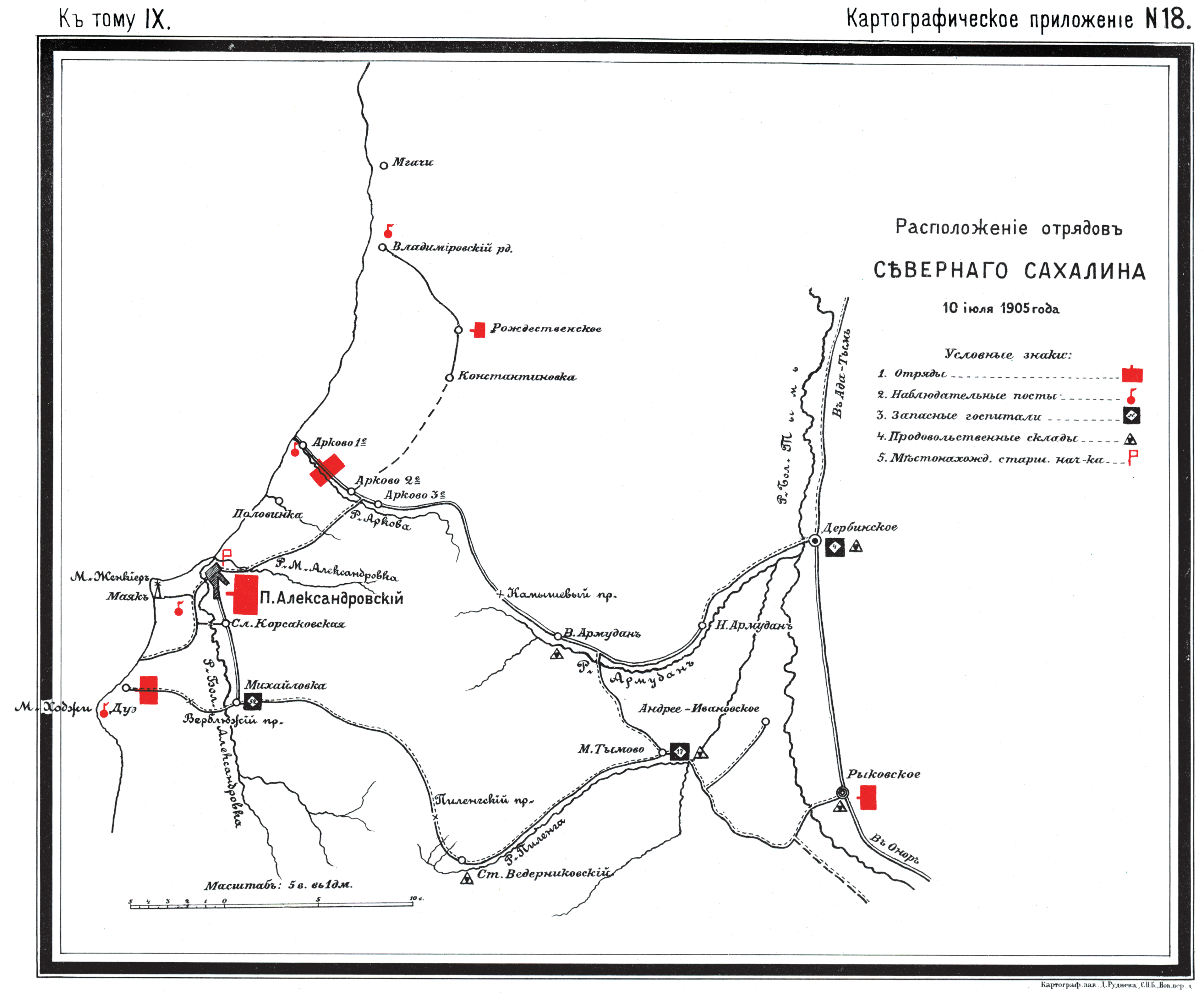 Расположение отрядов Северного Сахалина 10 июля 1905 года