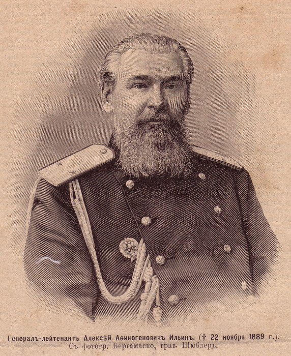 Алексей Афиногенович Ильин (1832–1889) – генерал-лейтенант с 1888 г., картограф. Его имя связано с возникновением и развитием первого в России частного картографического заведения. Спектр изданий, выходивших в нем, был необычайно широк: атласы, планы городов, глобусы, учебная литература, коронационные альбомы российских императоров, серия «Книги для народного чтения», 100 наименований репродукций художественных произведений и открыток известных художников: А. Бенуа, Л. Бакста, В. Васнецова, М. Добужинского, Н. Рериха – и многое другое.