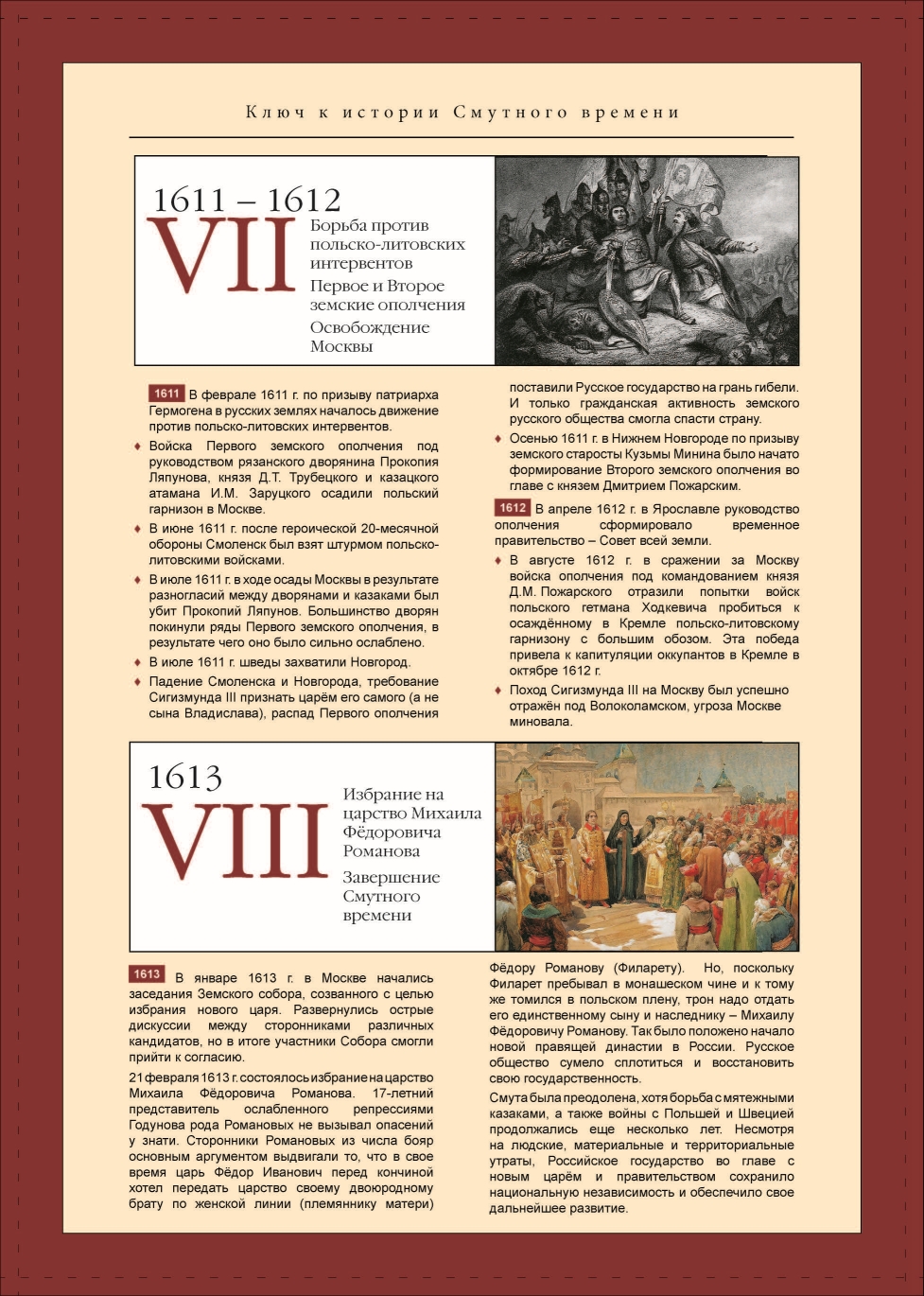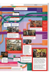 «Наглядная хронология» – новое иллюстрированное издание, представляющее исторические события и процессы на «ленте времени». Впервые читатель получает возможность ознакомиться с серией наглядных пособий по истории России. Настоящий выпуск посвящён Смутному времени – сложному периоду российской истории конца XVI – начала XVII вв., от пресечения династии Рюриковичей до воцарения династии Романовых. Исторические события с датами и пояснениями представлены здесь в хронологической последовательности. Они накладываются на «линии жизни» основных деятелей Смутного времени, представляющих три государства: Россию, Речь Посполитую и Швецию. Издание будет интересно школьникам и учителям в учебном процессе и при подготовке к ЕГЭ, студентам и преподавателям, а также всем любителям истории.