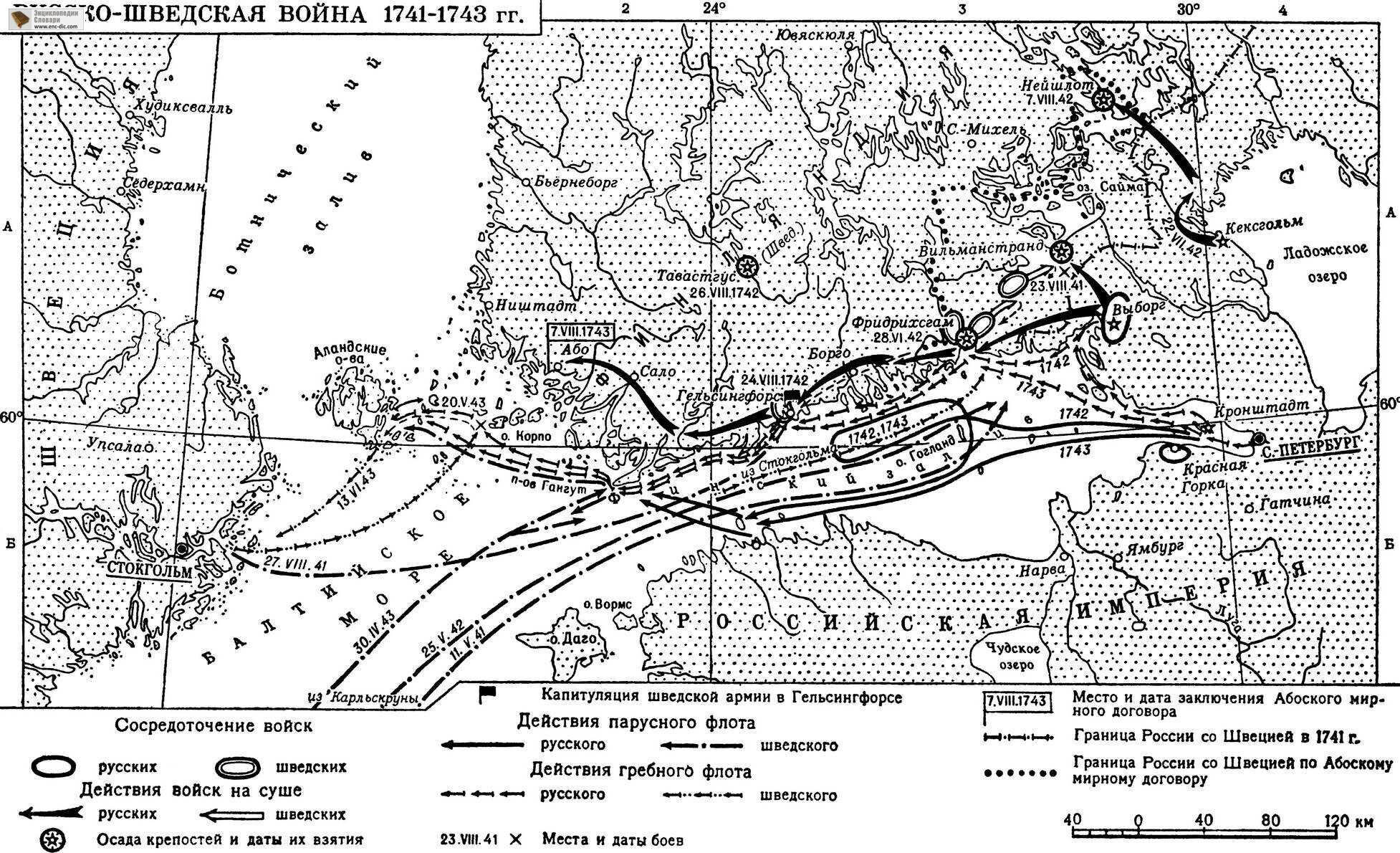 Русско-шведская война 1741-1743 гг. Карта.