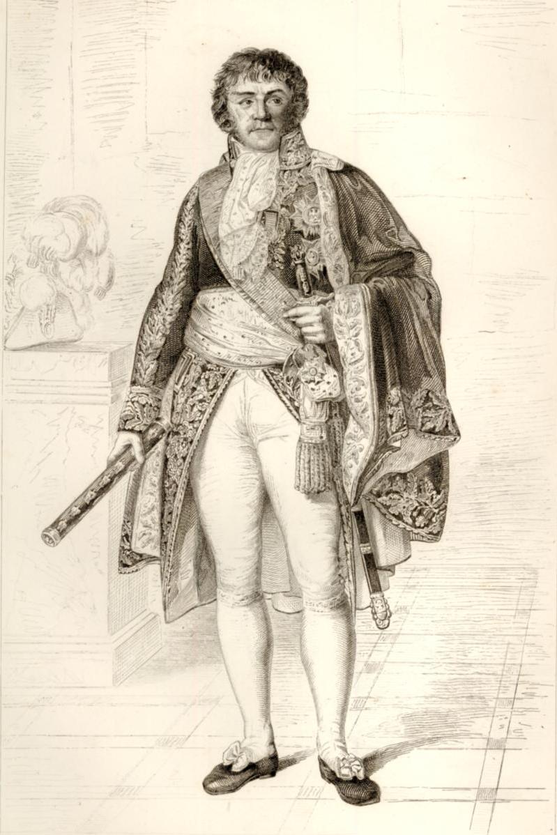 Перед обедом, в то время как все генералы и маршалы Лефевр, Ланн и Мортье ожидали прибытия императора, появился обер-гофмаршал Дюрок со шпагой, рукоятка которой была художественно сработана из золота и усеяна бриллиантами. За ним шел офицер с подушкой красного бархата, на которой лежала золотая корона. Дюрок со шпагой и офицер с подушкой расположились по обе стороны кресла, приготовленного для Наполеона.