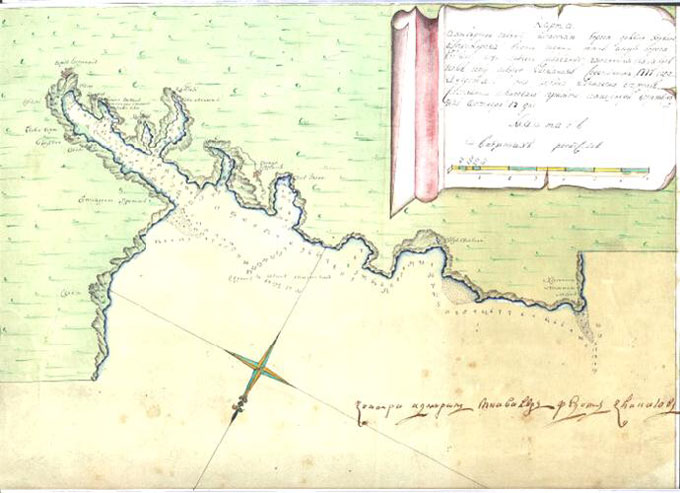 Карта Ахтиярской морской бухты, составленная мичманом Сорокиным в 1777 г., за 7 лет до основания Севастополя.