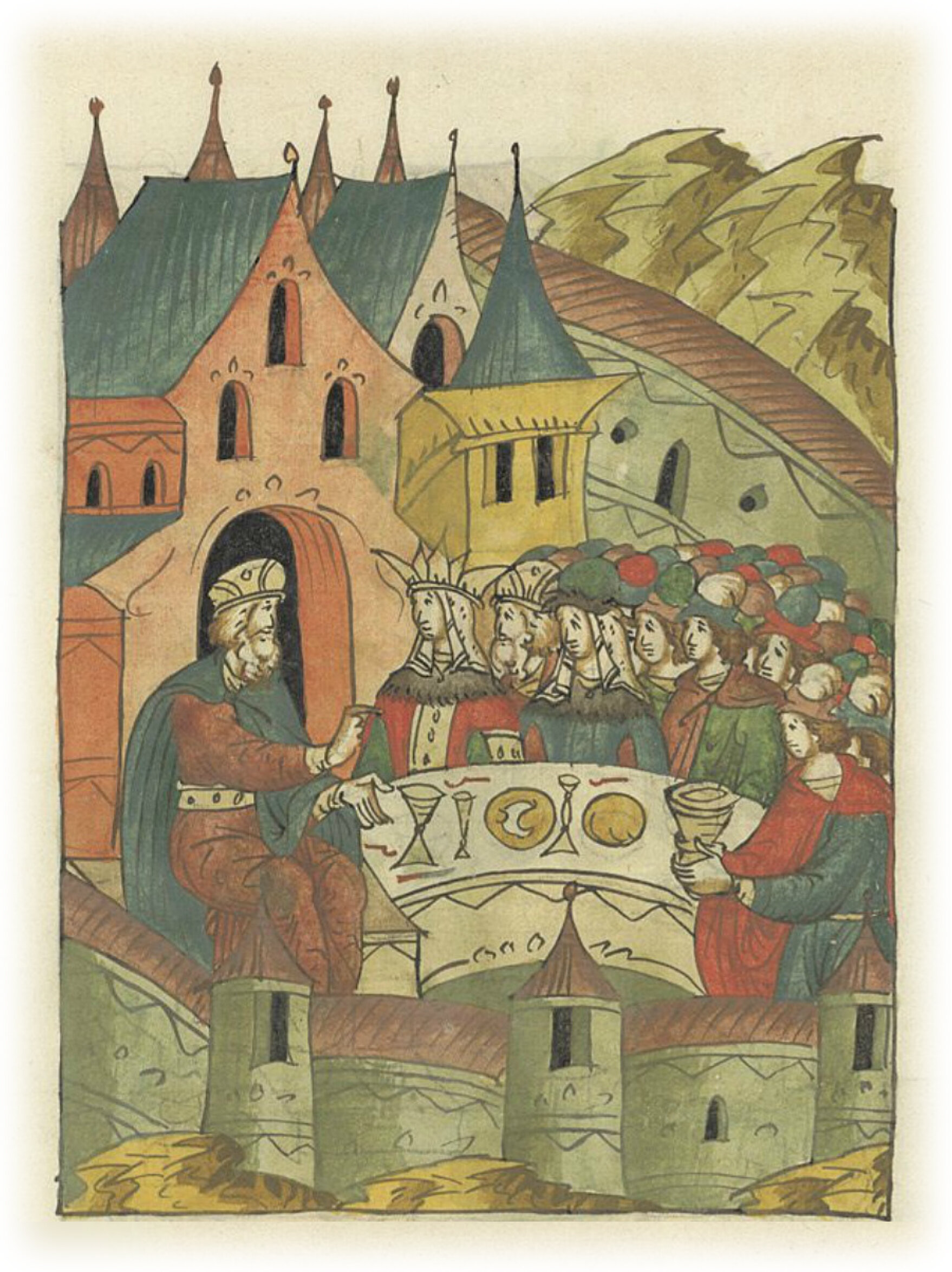 Традиционно предполагается, что прозвище связано с многодетностью Всеволода7. Действительно, он имел 8 сыновей и 4 дочери – семья многочисленная даже по средневековым меркам. Многочисленная, но далеко не уникальная. У отца Всеволода, Юрия «Долгорукого»8 , было 11 сыновей и 3 дочери. Дед Всеволода, Владимир Мономах, имел 8 сыновей и 3 дочери. У сына Всеволода Ярослава сыновей родилось 8 или 9 (см., например: [Войтович, с. 457–460, 547–550, 552–553, 568–570]). Уникальность Всеволода была в другом – в необычайной многочисленности его потомства в более отдаленных поколениях. Все ветви князей Северо-Восточной Руси (кроме ярославской, связанной с ним по женской линии) – князья московские, тверские, ростовские, белозерские, суздальско-нижегородские, галичско-дмитровские, стародубские – восходили к нему (и это только те ветви, что дожили до XV в., когда впервые фиксируется прозвище Всеволода, а ранее были еще прервавшиеся костромская, переяславская, городецкая и юрьевская). Именно этот факт и мог вызвать к жизни прозвище «Великое Гнездо» (ср.: [Карпов, с. 315]). В случаях употребления слова «гнездо» в значении ‘потомство того или иного князя в памятниках древнерусской литературы речь идет не о детях, а о более отдаленных потомках. В «Слове о полку Игореве» «Ольговым хоробрым гнездом» названы не дети Олега «Гориславича», а его внуки и правнуки – участники похода 1185 г. [Слово о полку Игоревѣ, с. 81]. В «Задонщине» Дмитрий Иванович именует себя и своего двоюродного брата Владимира Андреевича «гнездом» Владимира Святого (в Пространной редакции) или Ивана Калиты (в Краткой редакции) [«Слово о полку Игореве» и памятники Куликовского цикла, с. 536, 542, 549, 552]; первому московские князья приходились потомками в XII колене, второму – внуками. И прозвище «великое гнездо» в Тверском сборнике трактуется именно в значении ‘родоначальника’: «сей есть Всеволодъ всѣм Рускымъ нынѣшнимъ княземь отецъ, зовомый Великое Гнѣздо»; князьям-современникам составителя Тверского сборника Всеволод был, разумеется, «отцом» в смысле отдаленным общим предком. Появиться прозвище, следовательно, могло только тогда, когда необычайная многочисленность мужского потомства Всеволода стала очевидной: вряд ли в эпоху его внуков (их насчитывается еще не слишком впечатляющее число – 16), а скорее в позднейших поколениях, когда счет пошел на многие десятки. Таким образом, прозвище несомненно не было прижизненным и возникло вряд ли ранее XIV столетия. Не исключено, что оно было дано Всеволоду только при составлении в конце первой четверти XV в. статьи «Сице родословятся велицѣи князи русьстии», поскольку в этой и соседних содержащих перечни князей дополнительных статьях Новгородской первой летописи младшего извода впервые фиксируются многие неизвестные из более ранних источников княжеские прозвища (см.: [Горский 2020]).