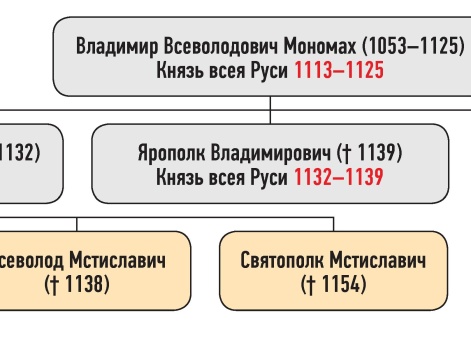 Генеалогическая схема к усобице Мстиславичей и Владимировичей летом 1135 г.
