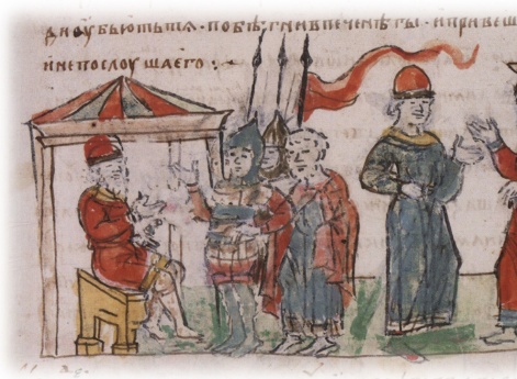 В год 6488 (980). Владимир вернулся в Новгород с варягами и сказал посадникам Ярополка: «Идите к брату моему и скажите ему: Владимир идет на тебя, готовься с ним биться». И сел в Новгороде.
