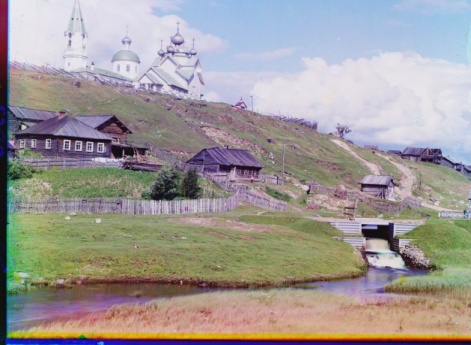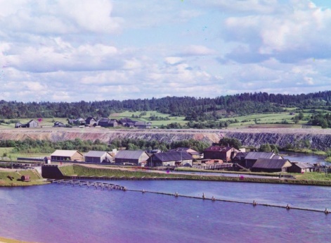 Олонецкая губерния, Вытегорский уезд, с. Девятины. Село Девятины и плотина Св. Бориса.