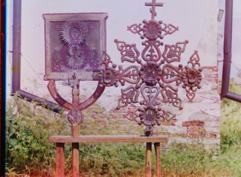Олонецкая губерния, Лодейнопольский уезд, с. Пидьма. Запрестольный крест и икона в церкви Преображения.