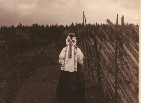 Олонецкая губерния. Старинный костюм крестьянки. Вид сзади.
