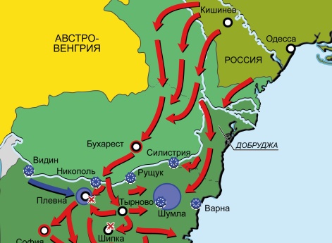 Россия: балканский театр войны рассматривался как главный, а кавказский как второстепенный. Сначала предусматривалось оккупировать Болгарию и вступить с Турцией в переговоры, но по мере мобилизации турецкая позиция становилась все тверже, поэтому стратегический замысел был изменен; планировалось теперь нанести удар на Константинополь, чтобы добиться успешного исхода войны.