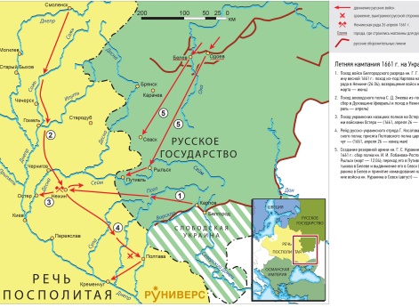 Кампания 1667 г. на Украине. Поход князя Ю. Н Барятинского в Ахтырский – русско-польская война 1654–1667 г. Движение гетмана П. Дорошенко