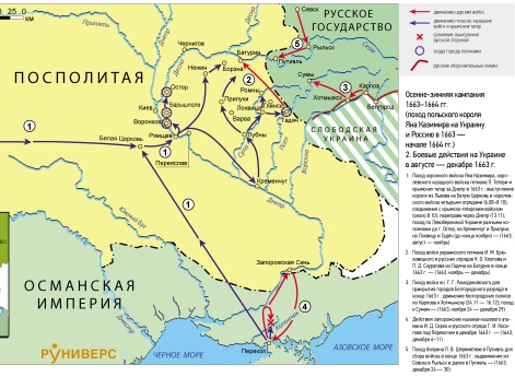Русско-польская война 1654–1667 гг. Осенне-зимняя кампания 1663–1664 гг. (поход польского короля Яна Казимира на Украину и Россию в 1663 — начале 1664 гг.) 2. Боевые действия на Украине в августе — декабре 1663 г.