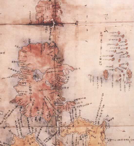 Это первая известная карта Сахалина и Южных Курильских островов была издана в Японии в эру Сохо.