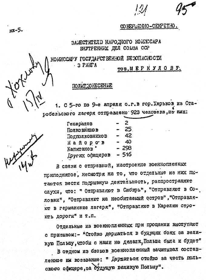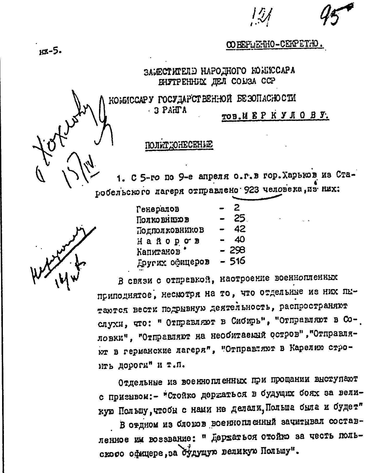 Воспроизв. по: Катынь. Пленники необъявленной войны. Документы и материалы. / Под редакцией Р.Г. Пихои, А. Хейштора.