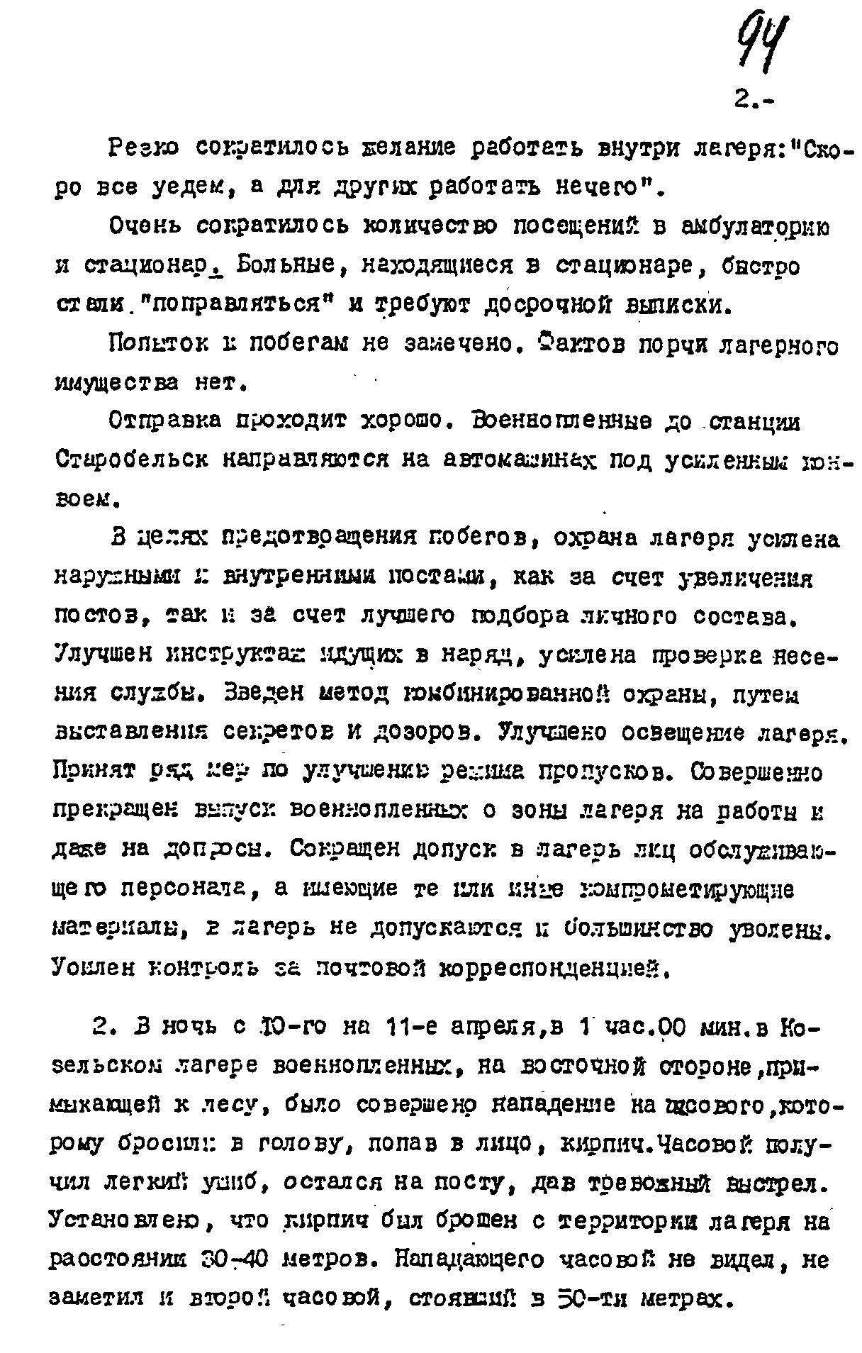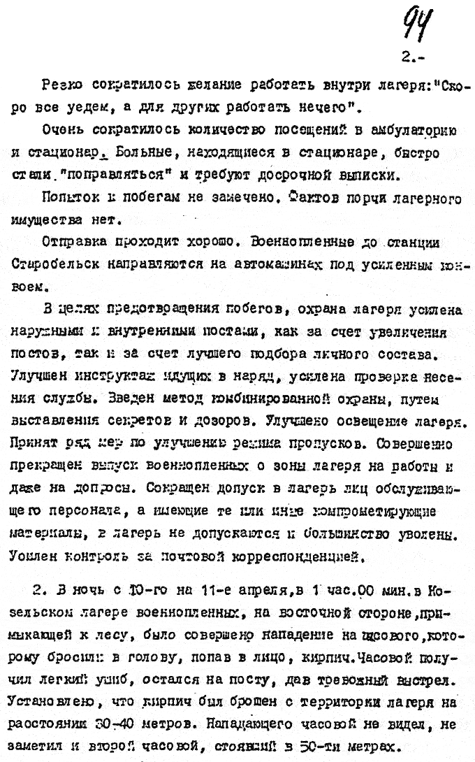 1940 год, 14 апреля о настроениях польских военнопленных перед отправкой из лагерей.