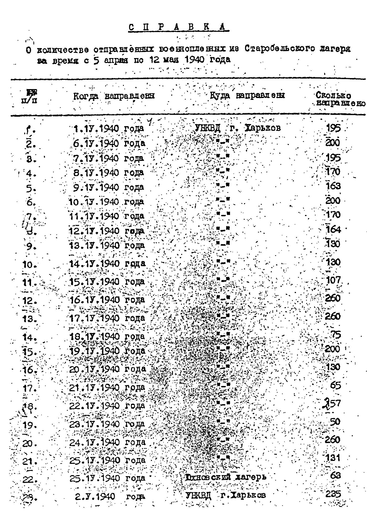 Справка о количестве отправленных польских военнопленных из Старобельского лагеря