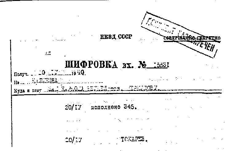 Шифровка об исполнении.