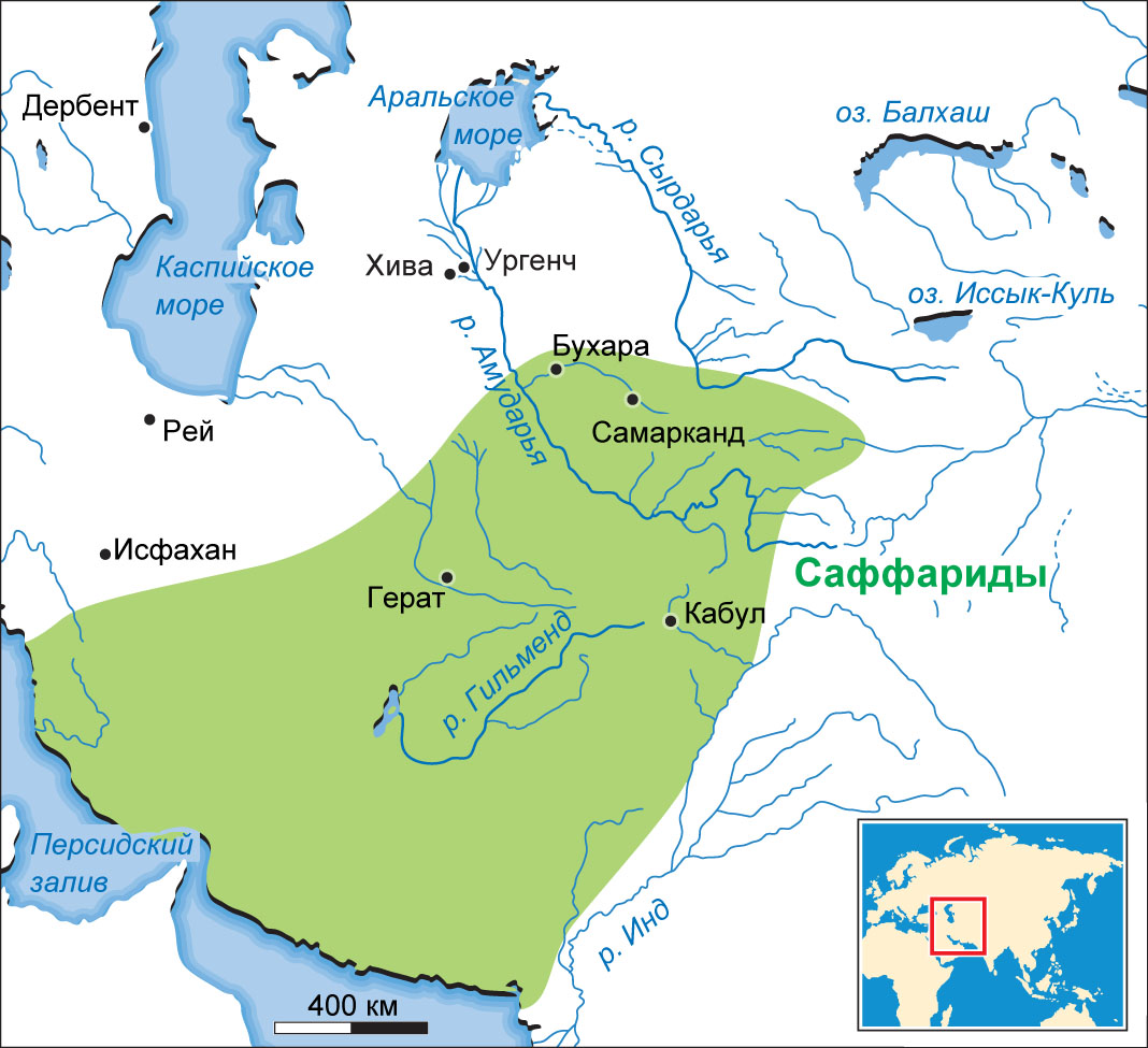«Якуб, сын Ляйса Саффара (т.е. медника), глава группы газиев (которые избрали его своим предводителем), благодаря игре судьбы сделался доверенным лицом при дворе халифского наместника области Седжестан (Систан, или Нимруз) и потом, незадолго до 868 (255) г., стал его преемником[i]. К тому времени он присоединил к своей области Герат и занял Фарс вместе с главным городом Ширазом; к этим владениям он скоро прибавил Балх и Тохаристан, а в 873 (259) г. отнял у Тахиридов Хорасан. После похода на Табари-стан, где он разбил Алида Хасана, сына Зейда, он открыто возмутился против халифа Мутамида и через Шираз и Ахваз двинулся на Багдад; но он был разбит братом халифа, Муваффаком, и в 879[ii] (265) г. умер. Его брат и преемник Амр был утвержден наместником Хорасана, Фарса, Курдистана и Седжестана. Халиф, однако, относясь с недоверием к все увеличивавшемуся могуществу Амра, побудил Саманида Исмаила в 900 (287) г. произвести нападение на него; Саффарид был разбит и взят в плен. Его внук Тахир наследовал ему в Седжестане, но был взят в плен в 903 (290) г. в то время, когда старался восстановить господство своей династии в Фарсе[iii]. Два других члена семьи тщетно старались возвратить себе потерянные владения. В 296 г.[iv] Седжестан был отдан Саманидам, но Саффариды еще около столетия продолжали притязать на эту область, и некоторым удавалось на короткое время овладеть ею[v]»