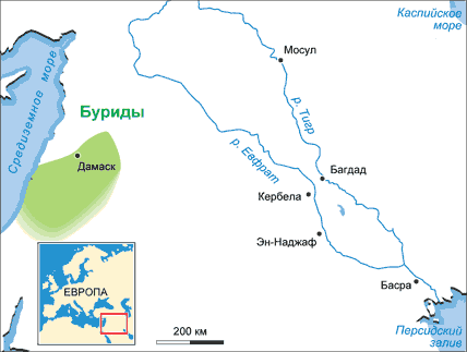 , династия эмиров, правившая в Южной Сирии в 1104-1154 гг. Основатель — Туг-тегин (1104-1128), атабек сельджукского правителя Сирии Дукака б. Тутуша I (1095-1104). Женившись на матери своего воспитанника, Туг-тегин стал единолично управлять Сирией. Буриды выступали с походами против крестоносцев; однако им не удалось укрепить власть внутри страны и получить поддержку местного населения. В 1154 г. в Дамаске утвердилась власть халебского эмира Нур ад-Дина.