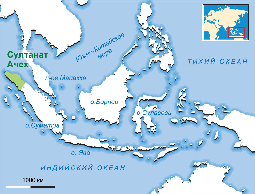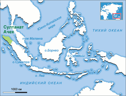, мусульманское государство на севере Суматры. С VIII в. стал центром распространения ислама. До начала XVI в. область входила в состав княжества Пасей. В борьбе с португальцами и султанатом Джохор Ачех добился контроля над Малаккским проливом. Султаны Искандар Муда (1607-1636) и Искандар Тани (1636-1641) подчинили всю Суматру и Малайю. Ачех поддерживал торговые связи с Меккой, Османской империей, империей Великих Моголов и Китаем. Султанат являлся крупным религиозным и культурным центром индонезийского ислама, где процветали религиозные школы (в том числе индоинизированного суфизма). В середине XVII в. с появлением в регионе голландцев начался упадок Ачех. В первой половине и середине XIX в. в султанате шли войны за престолонаследие. В 1850-1860-х гг. происходили столкновения с голландцами, а в 1873 г. вспыхнула Ачехская война, приведшая к ликвидации султаната в 1903 г.