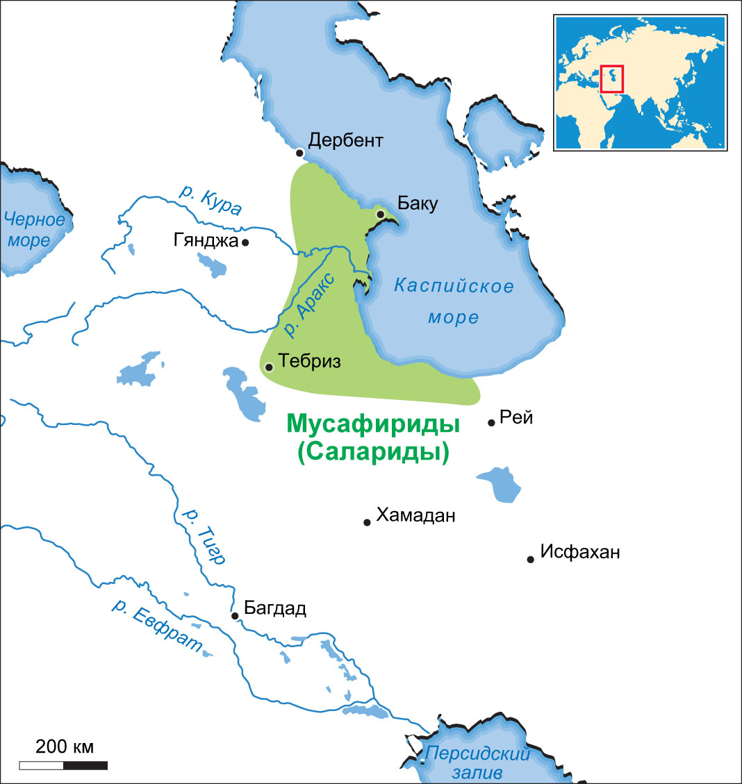 «Мусафириды или Салариды. ранее 916 — около 1090 (ранее 304 — около 483). Дейлем с центром в Таруме и Самиране, позже в Азербайджане и Арране