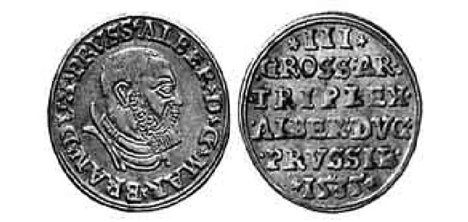 3 гроша (30 пфеннигов) Прусского герцогства времен правления герцога Альбрехта (1525 — 1569).