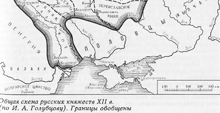 «По смерти Глеба, в княжение Романа Ростиславича в Киеве, летописец упоминает о половецких набегах на пограничные земли по реке Роси, но гораздо замечательнее шла борьба с варварами по ту сторону Днепра, где северский князь Игорь Святославич пошел на половцев в степи за Ворсклу. Узнавши на дороге, что два хана, Кобяк и Кончак, отправились пустошить Переяславскую волость, Игорь погнался за ними, принудил бежать и отнял всю добычу: так счастливо начал борьбу свою с половцами Игорь Святославич, которому суждено было приобрести такую знаменитость от несчастного похода своего на них. В 1179 году Кончак много зла наделал христианам у Переяславля, в 1184 году - новое известие о нашествии Кончака. До сих пор усобицы между Мономаховичами и Ольговичами на юге не давали князьям возможности отплачивать половцам походами в степи, но теперь с окончательным утверждением Святослава Всеволодовича в Киеве усобицы прекратились, и начинается ряд степных походов. Уже в 1184 году, после нашествия Кончака, князь Святослав, посоветовавшись с сватом своим Рюриком, пошел на половцев и стал у Ольжич, ожидая Ярослава Всеволодовича из Чернигова; Ярослав приехал и сказал им: "Теперь, братья, не ходите, но лучше назначим срок и пойдем, даст бог, на лето". Старшие князья послушались и возвратились, приказавши вместо себя идти в степь младшим: Святослав отправил Игоря Святославича северского, а Рюрик - Владимира Глебовича переяславского. Но эти младшие - Мономахович Владимир и Ольгович Игорь сейчас же начали спор за старшинство и поссорились: Владимир стал проситься у Игоря ехать напереди, а Игорь не пустил его, тогда Владимир рассердился и вместо половцев пошел на северские города, где взял большую добычу; Игорь один с своими Ольговичами отправился на половцев и принудил их бежать, но далеко не мог идти за ними, потому что от дождя вода поднялась в реках.