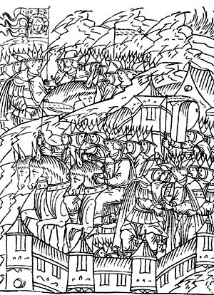 Вступление русского войска в Казань. Миниатюра из Лицевого летописного свода 16 века