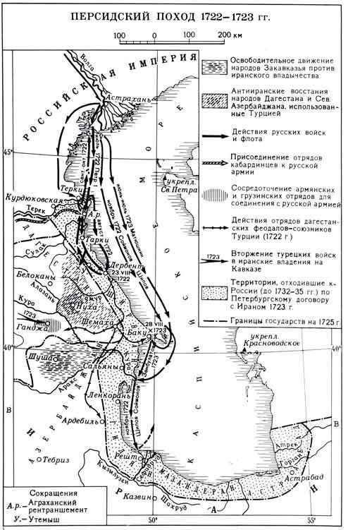 1723 год. 23 сентября (12 сентября ст.ст.) между Россией и Персией был заключен мирный договор, по которому к России отошли Дербент, Баку, Решт, провинции Ширван, Гилян, Мазендеран и Астрабад.