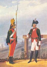 Рядовой и обер-офицер пехотного полка в форме 1786—1796 гг.