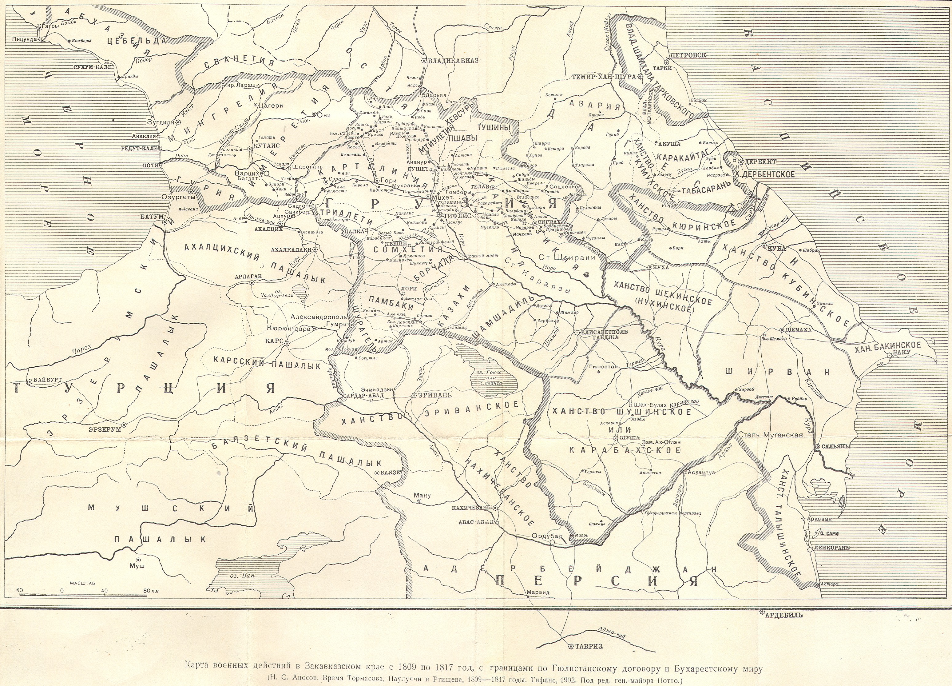 Карта военных действий в Закавказском крае с 1809 по 1817 год с границами по Гюлистанскому договору и Бухарестскому миру. 1902 год