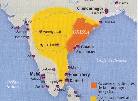 Именно Бюсси предложил новшество, которым потом воспользовались англичане, и которое стало причиной их успеха в Индии. Поскольку зависимость от казны местных правителей тягостна, надо, говорил Бюсси, иметь в своем распоряжении земли, принадлежащие компании, дабы налоги с них поступали на нужды армии. То есть если какой-то индийский наваб хочет получить помощь французов, он обязан выделить компании земли, которые отчуждаются в пользу Франции, там создается налоговая система, которая кормит французские войска в этом регионе. Индийские правители проводили парады (де Жантиль описывает один такой): «Тысяча воинов с мушкетами открывали шествие, за ними следовали слоны-знаменосцы, затем четыре сотни французских сипаев, опять слоны, на которых сидели придворные, вновь французские сипаи, телохранители, гарем. В центре шествия на великолепном слоне ехал сам субадар, номинальный повелитель Хейдарабада, Голконды и Биджапура. За ним двигалось еще двадцать слонов и караван верблюдов. Замыкал торжественный кортеж отряд конницы».