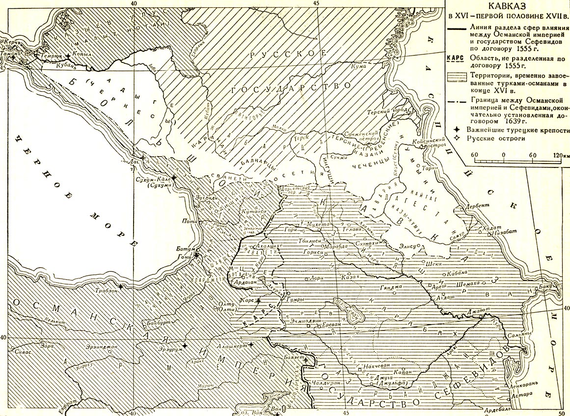 «Период борьбы Турции и сефевидского Ирана за Кавказ — это период упадка экономической, политической и культурной жизни Армении, Грузии и Азербайджана. Во многих местах лишь поросшие густым лесом развалины свидетельствовали, что ранее здесь била ключом ремесленная или сельскохозяйственная деятельность. Освободительная борьба кавказских народов.
