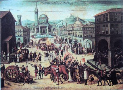 Первая религиозная война (1562–1563). 1 марта 1562 Франсуа Гиз напал на совершавших богослужение гугенотов в местечке Васси (Шампань). Триумвиры захватили Карла IX и Екатерину Медичи в Фонтенбло и добились от них отмены Январского эдикта. В ответ Конде и Ф. д’Андело заняли Орлеан, сделав его своим оплотом; они заключили союз с английской королевой Елизаветой I и немецкими протестантскими князьями. Триумвиры взяли Руан, помешав объединению сил англичан и гугенотов в Нормандии; при его осаде погиб Антуан Наваррский. Получив подкрепление из Германии, Конде подошел к Парижу, но затем двинулся в Нормандию. 19 декабря 1562 у Дре он был разбит войсками триумвиров и взят в плен; в свою очередь католики потеряли маршала Сент-Андре и коннетабля Монморанси (первый убит, второй попал в плен). Возглавивший гугенотов адмирал Колиньи укрылся в Орлеане. Ф.Гиз осадил осадил город, но вскоре погиб под его стенами от руки убийцы. Смерть Гиза открыла путь к переговорам. В марте 1563 лидеры гугенотов и католиков при посредничестве Екатерины Медичи заключили Амбуазский мир, в своих основных пунктах подтвердивший Январский эдикт».