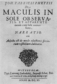 В 1611 году голландско-немецкий астроном Йоханнес Фабрициус описывает первые наблюдения пятен на солнце