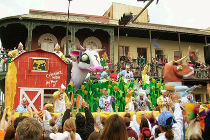 В 1711 года в городе Форт Луи де ля Мобиль (ныне город Мобил), штат Алабама французские поселенцы проводят первый карнавальный парад Марди Гра на американском континенте. Наряду с шествиями, по городу провезли на платформе огромную коровью голову из папье-маше – неотъемлемую часть ритуала Марди Гра.