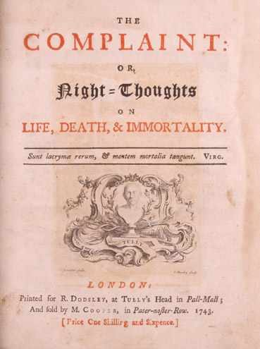 В 1742 году английский писатель Эдуард Юнг пишет свою знаменитую поэму «Жалоба, или Ночные размышления о жизни, смерти и бессмертии».