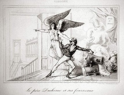 «Самое понятие левых якобинцев в исторической литературе нельзя считать окончательно установившимся, и в толковании связанных с этим вопросов существуют порою разные взгляды. Нам представляется, что под левыми якобинцами следует понимать то направление в рядах якобинской партии, представленное Шометтом, Пашем, Моморо, Бушоттом, Анрио и др., которое было наиболее тесно связано с народными низами и сознательно стремилось к улучшению положения городской бедноты, к смягчению ее нужды, уделяя большое внимание социальным вопросам. Влияние левых якобинцев сильнее всего чувствовалось в Коммуне Парижа, где Шометт и Эбер играли руководящую роль, в Клубе кордельеров. В самом Революционном правительстве, в Комитете общественного спасения, левоякобинские круги были представлены Бийо-Варенном и Колло Д'Эрбуа. К ним были близки входившие в состав Комитета общественной безопасности Вадье, Вуллан, отчасти Амар. Под влиянием левых якобинцев в значительной мере находилось и командование революционной армии, в частности ее главнокомандующий Ронсен и его помощники. Наконец, левые якобинцы, как и дантонисты, имели свой печатный орган - газету Эбера «Пер Дюшен» , излагавшую в стиле простонародного или, вернее, псевдонародного языка, пересыпанного площадной бранью, самые крайние взгляды, и при всем том все же пользовавшуюся немалой популярностью в кругах санкюлотов. Ни в организационном, ни в идейном отношении левые якобинцы не представляли собой чего-либо единого и оформленного. Одно время - осенью 1793 г.- их сближала общность пропаганды и даже осуществление на практике политики так называемой дехристианизации - насильственного закрытия церквей и замены религиозного культа искусственно насаждаемым «культом разума». Но после того как политика «дехристианизации», вызывавшая недовольство крестьян, была в ноябре осуждена Робеспьером, а в декабре Конвент провозгласил свободу культов, Шометт, Эбер, а вслед за ними и другие «дехристианизаторы» отказались от этой политики как ошибочной. Вскоре между руководителями левых якобинцев - Шометтом и Эбером - обозначились разногласия.